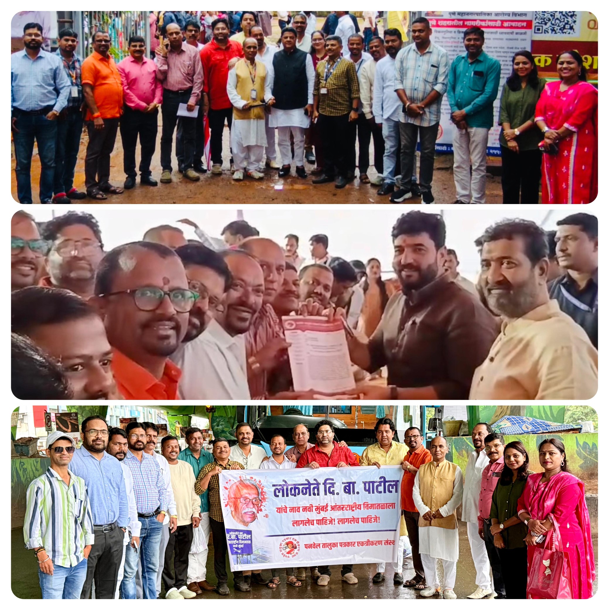 यावेळी पनवेल तालुका पत्रकार एकत्रीकरण संस्थेच्यावतीने नवीमुंबई आंतरराष्ट्रीय विमानतळाला स्व. लोकनेते दि.बा.पाटील यांचे नाव मिळेपर्यंत आमचा लढा सुरूच राहणार असल्याचे सांगितले. तसेच यापुढेही मुंबई मंत्रालयावरील पायी मोर्चा, दिल्ली येथे केंद्रीय नागरी व उड्डाणमंत्री किंजरापू राममोहन नायडू यांची भेट घेऊन येत्या ८ ऑक्टोबर रोजी विमानतळाच्या उदघाटनापूर्वी विमानतळाला स्व. लोकनेते दि.बा.पाटील यांचे नाव जाहीर करण्याबाबत निवेदन देण्याचेही योजले असल्याचे संस्थेच्यावतीने सांगण्यात आले.