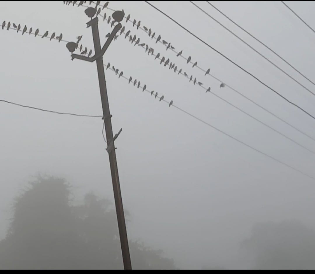 खांदाड गावात गेल्या काही दिवसांपासून पहाटेच्या चटकदार थंडीमध्ये एक विलक्षण आणि लक्ष वेधून घेणारी घटना पाहायला मिळत आहे. परिसर दाट धुके, कडाक्याची थंडी आणि पूर्ण शांततेच्या वातावरणाने व्यापलेला असतो. स्थानिक तलावाजवळ तर थंडी आणखी तीव्र जाणवते, ज्यामुळे सभोवताल निसर्ग मृतवत शांत भासतो. अशा या गोठलेल्या वातावरणात, नेमके सहा वाजताच्या सुमारास एक अद्भुत दृश्य दिसते—उंच विद्युत खांबावरच्या तारांवर शेकडो मैनांचे शिस्तबद्ध, सरळ रेषांमध्ये बसलेले थवे! हे दृश्य बघितल्यावर कोणीही थबकून पाहत राहतो.